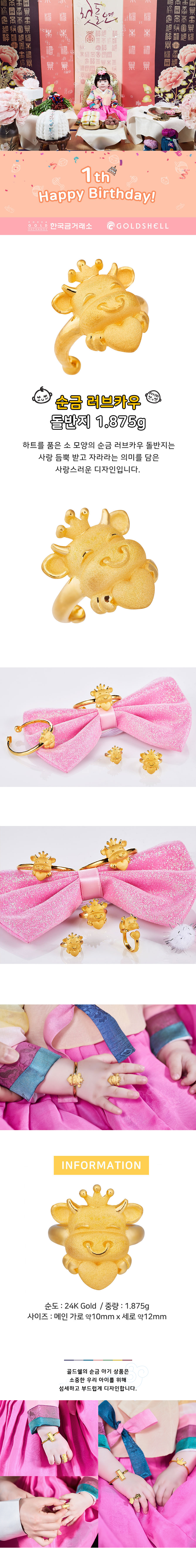 순금 러브카우 돌반지 1.875g